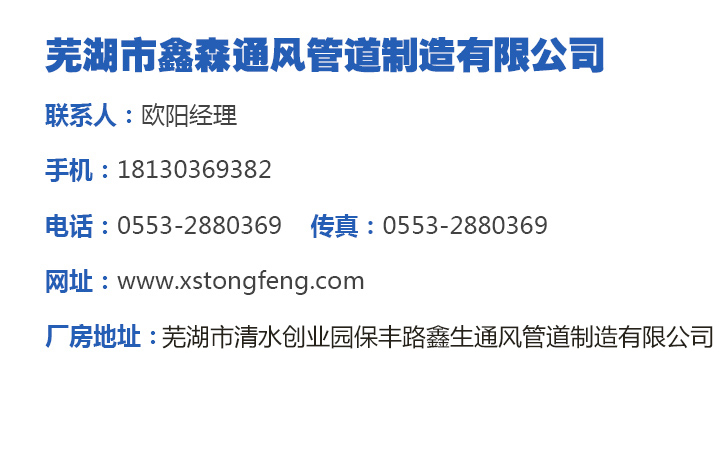 地址:蕪湖市鳩江區(qū)清水創(chuàng)業(yè)園保豐路鑫森通風(fēng)管道制造有限公司